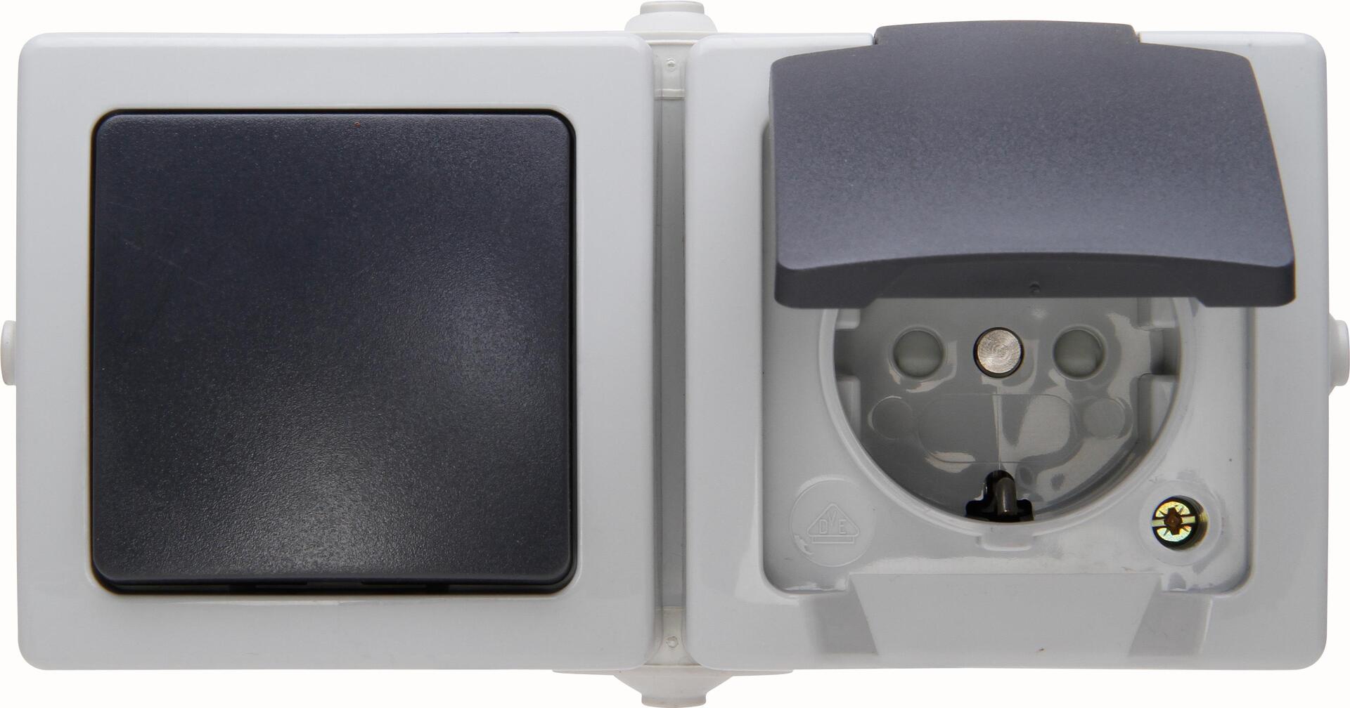 Aufputz-Feuchtraum, Aus-/Wechselschalter-Steckdosenkombination waagerecht, mit erhöhtem Berührungsschutz (Berührungsschutz), Schalter 10A, Steckdose 16A, 250V~, IP44, NAUTIC, ...