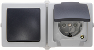 Kopp Ausschalter, Wechselschalter, Schutzkontakt-Steckdose mit Klappdeckel Nautic Grau 138656001 (138656001)