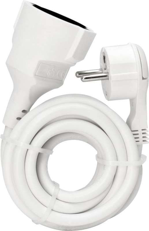 Verlängerung, IP 20, 16 A, 250 V~, Schutzkontakt-Flach-Stecker und Schutzkontakt-Kupplung mit Leitung H 05VV-F3G1,5mm², mit erhöhtem Berührungsschutz, 3 m, weiß, optimal für die Positionierung in Steckdosen hinter ...