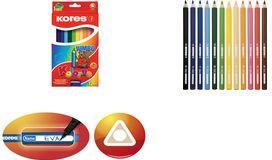 Kores Buntstifte \"JUMBO\", 12er Karton-Etui + GRATIS Spitzer, inkl. Namensfeld, aus Lindenholz mit bruchsicherer Mine, in 3-eckiger Triangular Form, sortiert in den Farben: fleischfarben, gelb, hellrot, orange, rosa, dunkelviolett, blau, hellblau, grün, hellgrün, hellbraun und schwarz, (BB100712)