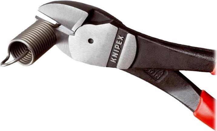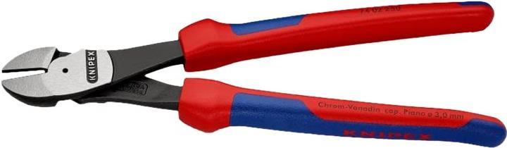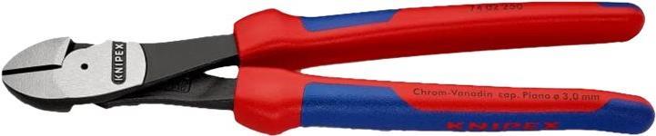 Der Kraft-Seitenschneider Knipex 74 02 250 wird dank seiner hohen Schneidleistung und seiner unverwüstlichen Robustheit vor allem von Handwerkern und Industriemechanikern geschätzt. In der Ausführung mit 250 mm Länge kommt er häufig auf dem Bau und in der produzierenden Industrie zum Einsatz, da man mit ihm auch harte Materialien wie Pianodraht bis 3,0 Ø mm kräfteschonend schneiden kann.