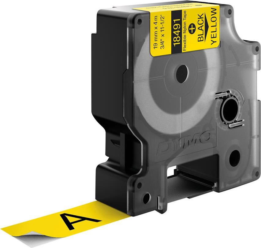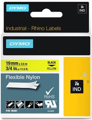 DYMO - Nylon - Schwarz auf Gelb - Roll (1,9 cm x 3,5 m) 1 Kassette(n) Flexitape - für Rhino 4200, 6000, 6000 Hard Case Kit; RhinoPRO 5000 (18491)