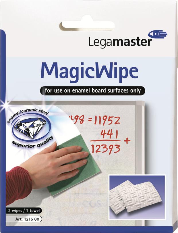 Legamaster MagicWipe ist sepziell für die Nutzung auf emaillierten Oberflächen - schauen Sie nach dem abgebildeten Logo auf Ihrem Legamaster-Board.