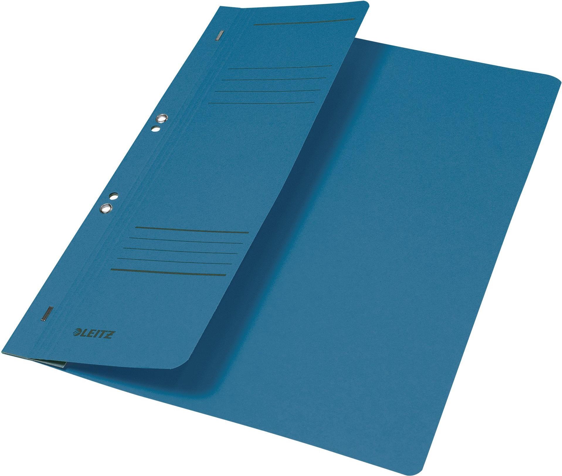 LEITZ Ösenhefter, DIN A4, Manilakarton, blau, kaufmännische Heftung, 250 g/qm, 1/2 Vorderdeckel (90 mm breit) - 50 Stück (3740-00-35)