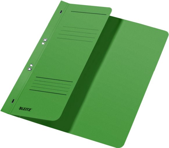 LEITZ Ösenhefter, DIN A4, Manilakarton, grün, kaufmännische Heftung, 250 g/qm, 1/2 Vorderdeckel (90 mm breit) - 50 Stück (3740-00-55)