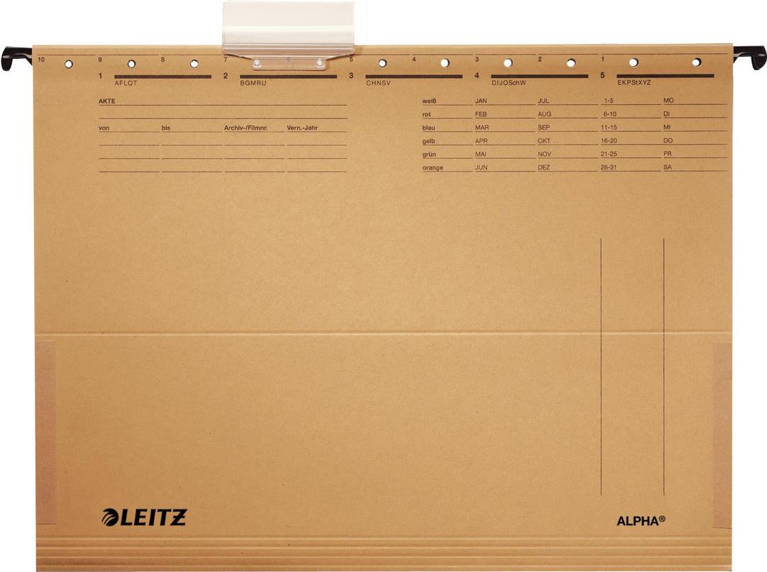 Alpha Hängetaschen sind ideal für eine platzsparende Ablage ungelochter Unterlagen im Hängezug.