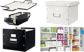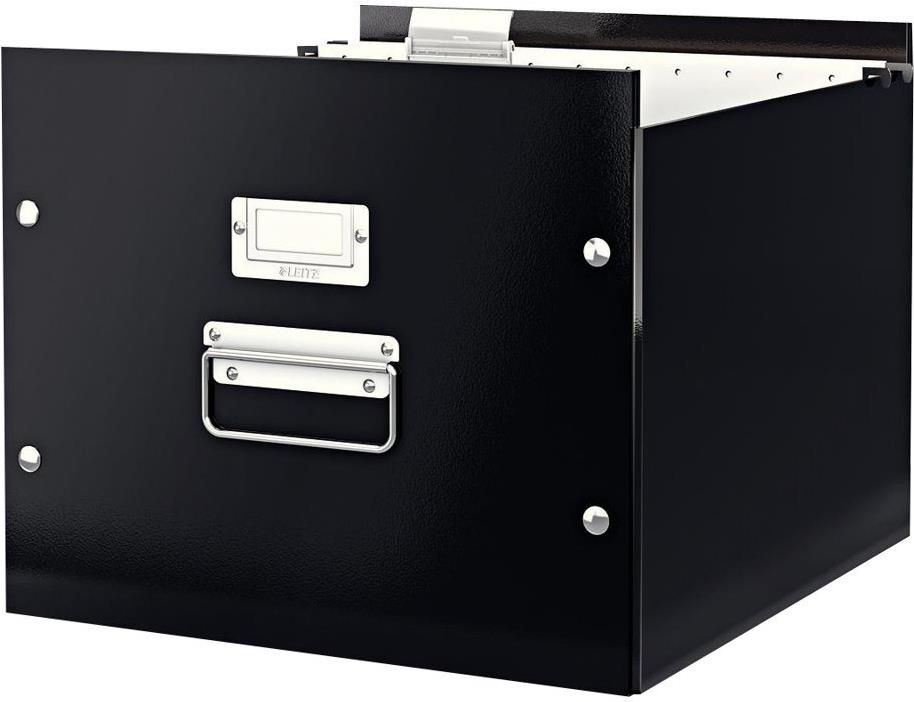 Aufbewahrungs- und Transportbox für Hängeregistratur für Format A4 mit laminierter Oberfläche und metallverstärkten Ecken für einen dauerhaften Schutz. Hergestellt aus stabilem, hochwertigem recyceltem Karton. Leichtes Aufbauen dank praktischer Druckknöpfe und ebenso schnelles Zusammenklappen zum platzsparenden Verstauen. Modernes und zeitgemäßes Design für Zuhause oder fürs Büro. Passend für 15 Hängemappen.