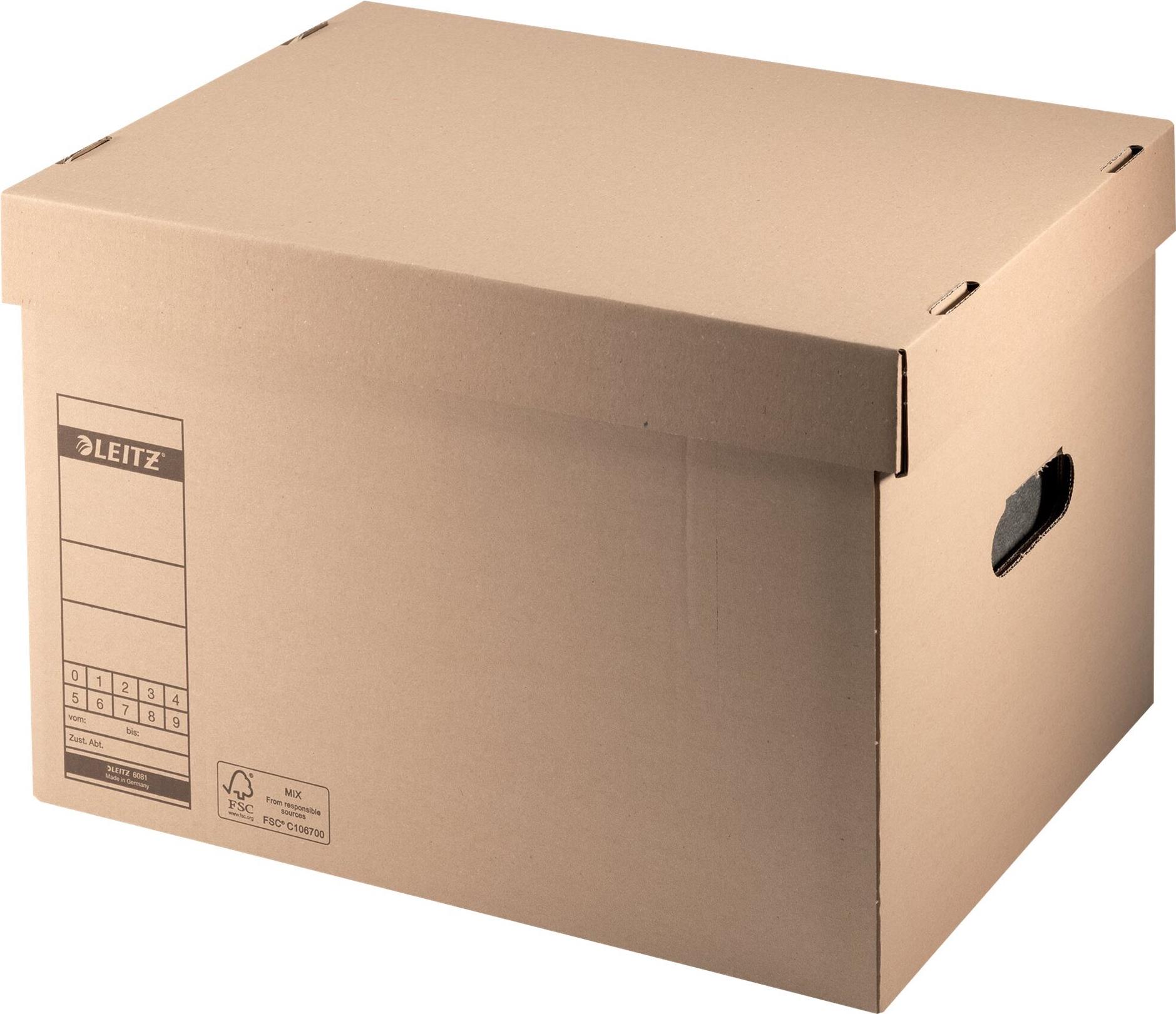LEITZ Archiv--Transportbox, aus Wellpappe, natron mit Natronpapier kaschiert, für Format DIN A4, mit Deckel (6081-00-00)