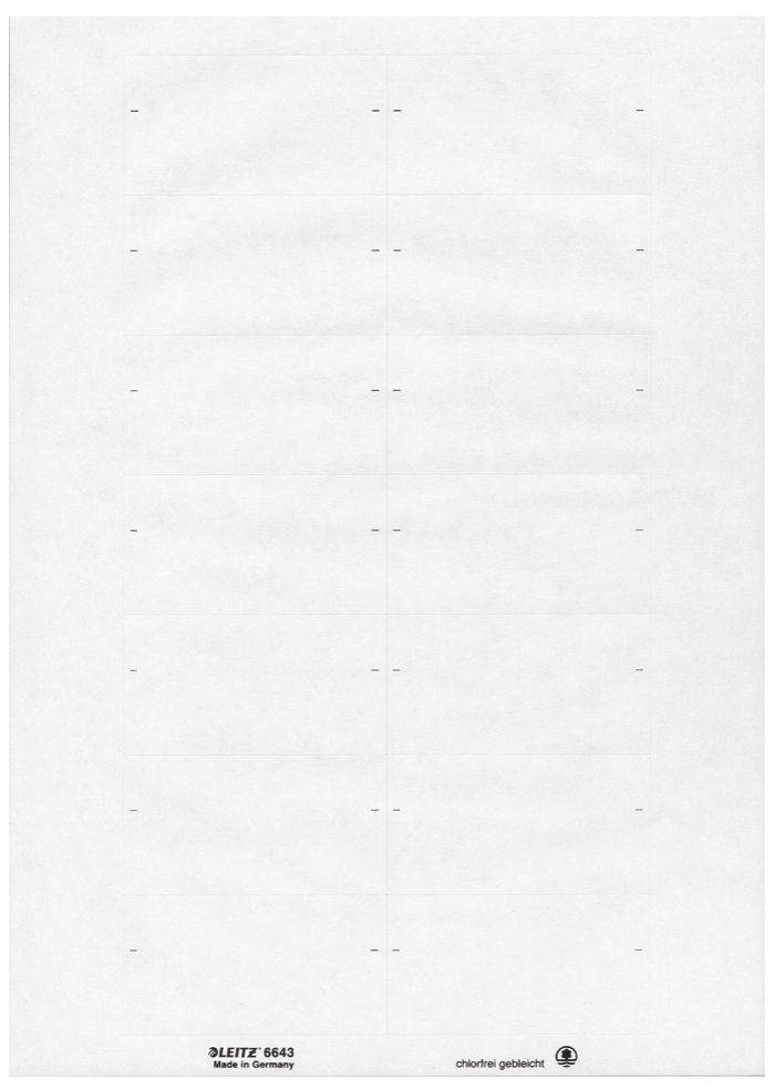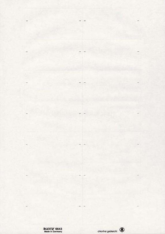 LEITZ Blanko-Beschriftungsschildchen, PC-beschriftbar, weiß weiß, für Registratur Orgacolor, selbstklebend (6643-00-01)