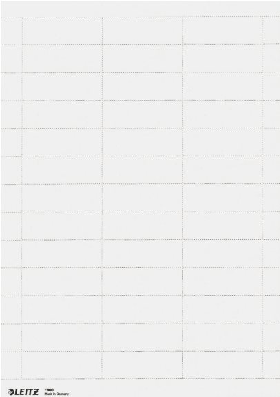 PC-beschriftbare Blanko-Schildchen auf A4 Bögen. Geeignet für Laser-, Tintenstrahldrucker und Kopierer. Passend für alle Leitz Hängeregistraturen.