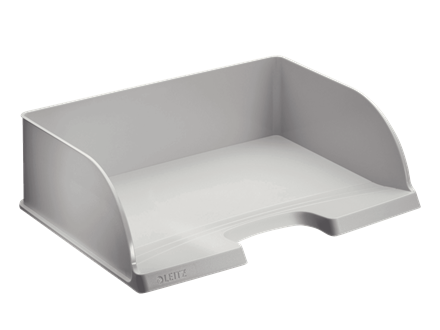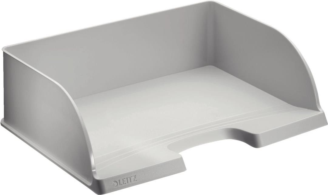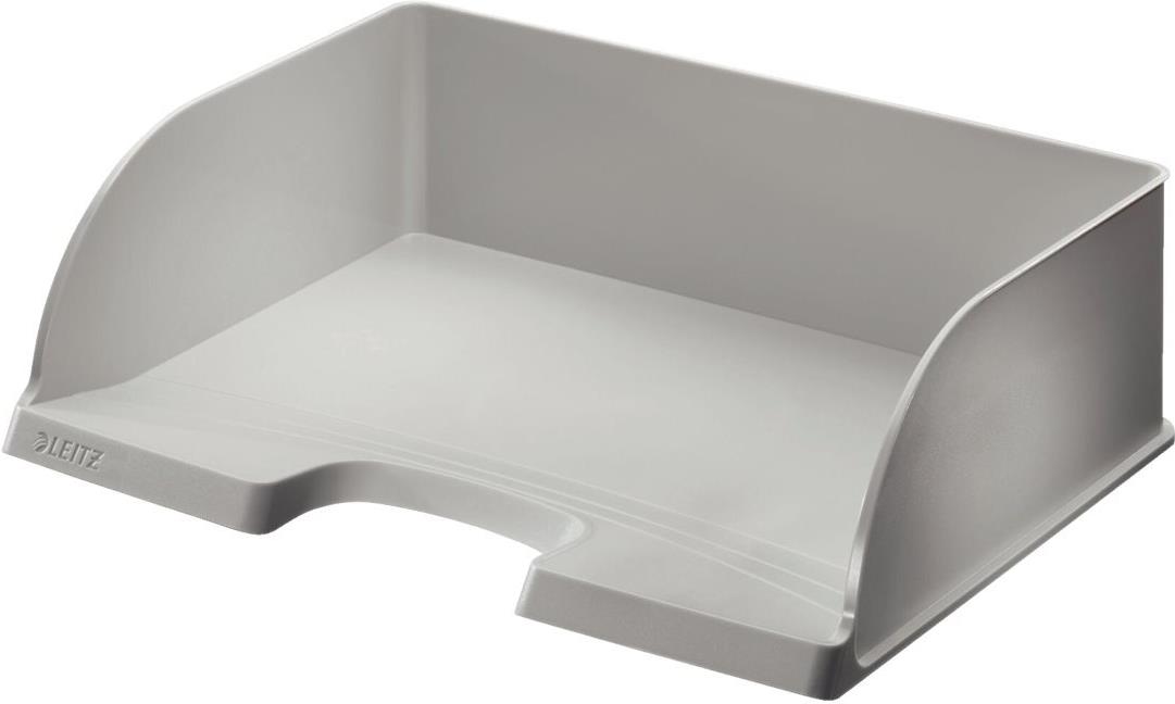 LEITZ Briefablage Plus Jumbo, DIN A4 quer, Polystyrol, grau Überbreite, vertikal und mit Briefablage Plus Standard 5218 stapelbar, großer Greifausschnitt, vorne abgeschrägt, Innenmaße: (B)350 x (T)245 x (H)97 mm, Außenmaße: (B)363 x (T)273 x (H)104 mm gepackt zu 1 Stück (5219-00-85)