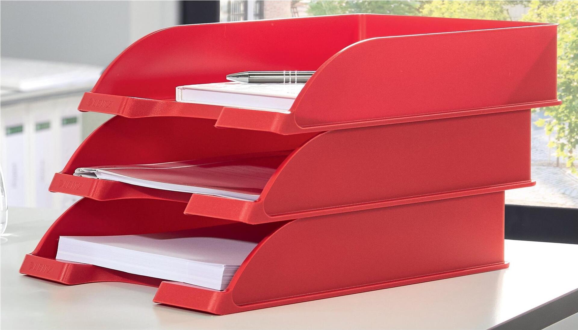 Esselte-Leitz LEITZ Briefablage Plus Standard, A4, Polystyrol, rot frost senkrecht oder versetzt stapelbar, großer Greifausschnitt, - 5 Stück (5227-00-26)