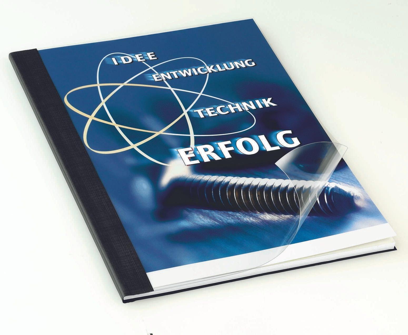Flexible Mappe mit transparenter Vorderseite für eine individuelle Titelgestalltung.