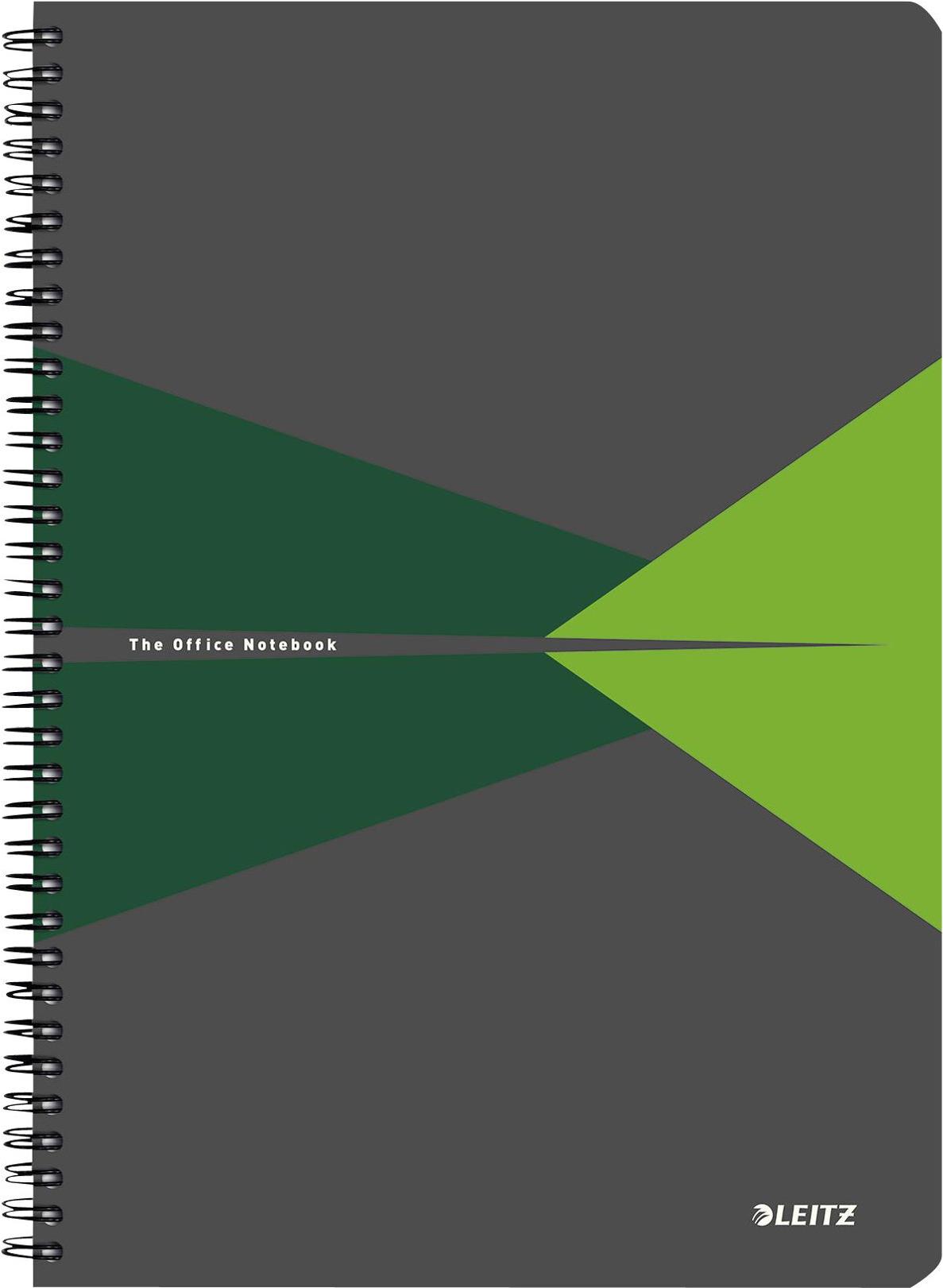 LEITZ Collegeblock "Office", DIN A4, liniert, 90 Blatt, grün laminierter Karton Einband, 90 g/qm, leichteres Schreiben - 1 Stück (4648-00-55)