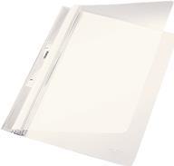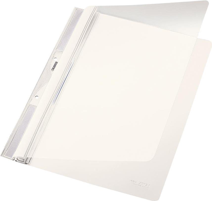 LEITZ Einhänge-Schnellhefter Universal, DIN A4, PVC, weiß Vorderdeckel transparent, Fassungsvermögen: 250 Blatt, 2 Beschriftungsschilder, Heftmechanik 80 mm auf beweglichem Falz, 80 mm Lochung im Rückenfalz, zum Einhängen in Hänge- registratur mit Hängeschiene 6101 möglich, Maße: (B)242 x (H)315 mm (4190-00-01)