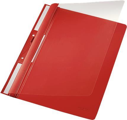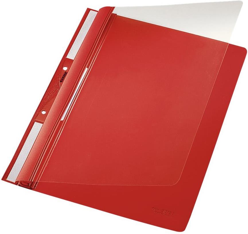 • LEITZ Einhänge-Schnellhefter Universal, DIN A4, PVC, rot Vorderdeckel transparent, Fassungsvermögen: 250 Blatt (4190-00-25)
