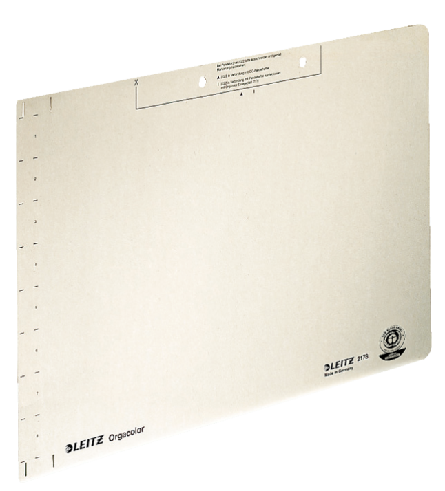 • LEITZ Einlegeblatt (B)323 x (H)224 mm, chamois Kraftkarton, 260 g-qm, Lochung: 80 mm, mit vorstehendem Tab (2178-00-11)