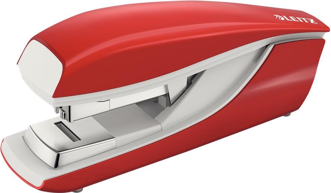 LEITZ Flachheftgerät Nexxt 5523, Heftleistung: 40 Blatt, rot Flachhefttechnologie spart bis 30% Platz im Ordner, Einlege- tiefe: 60 mm, für Heftklammern 24/6, 26/6 oder 24/8, ge- nagelte und Flach-Heftung, Heftklammermagazin mit Spring- fachmechanik, aus Metall, mit Kunststoffelementen, inkl. Heftklammern 24/8 (5523-00-25)