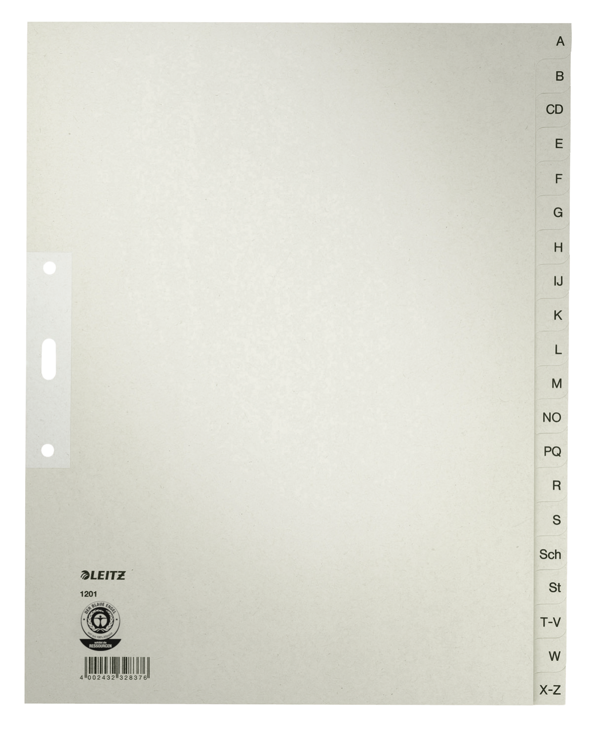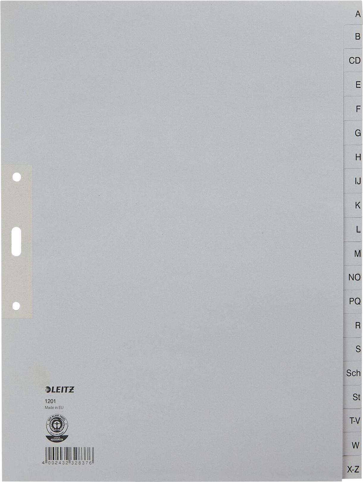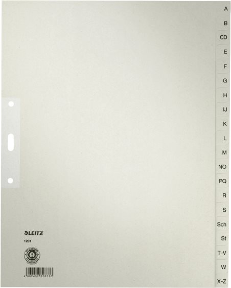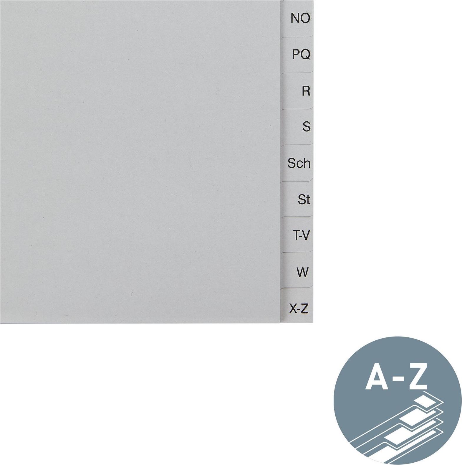 Umweltfreundliches Papierregister mit alphabetischer Tabenbedruckung für ein schnelles Sortieren und Wiederfinden der Unterlagen.