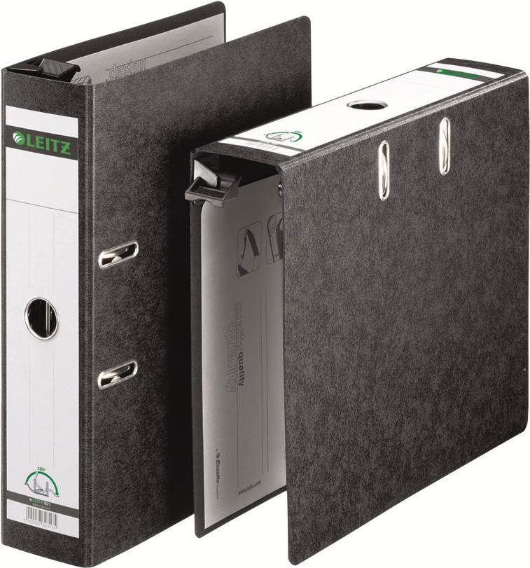 LEITZ Hängeordner, 180 Grad, DIN A4, 80 mm, schwarz Einband aus Pappe, mit aus- und einklappbarem Hängeschwenk- (1821-00-00)