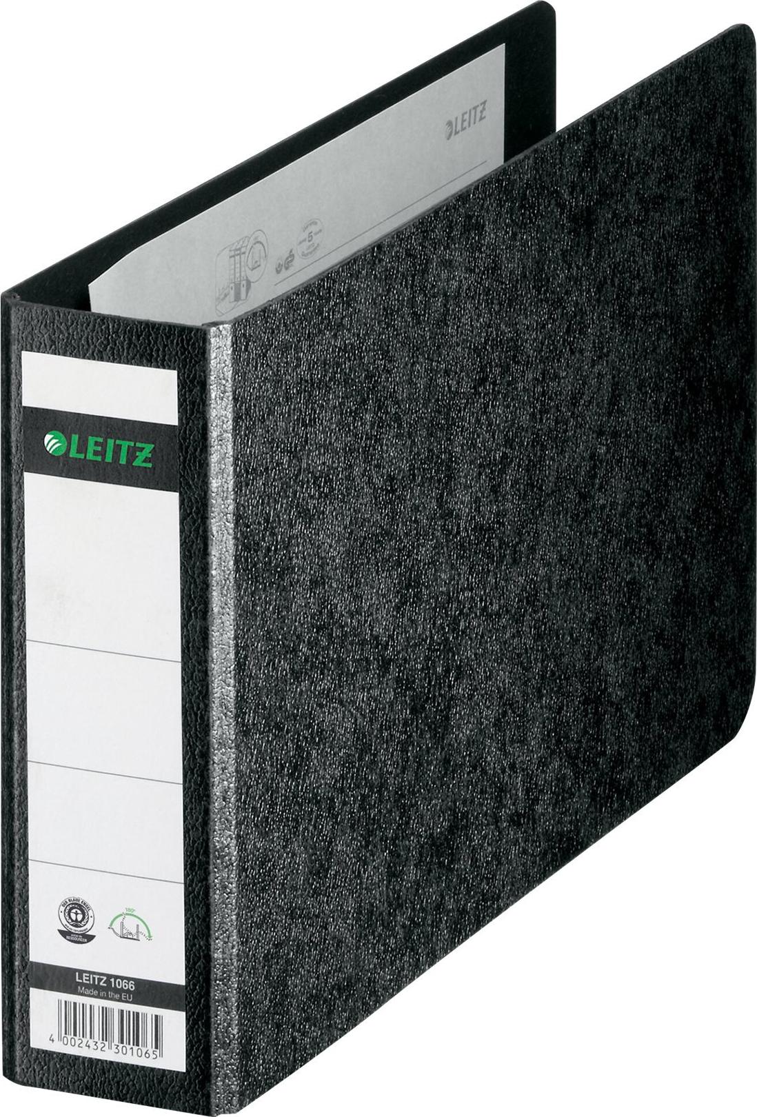 LEITZ Hartpappe-Ordner, 180 Grad, DIN A5 quer, 56 mm,schwarz Einband aus Hartpappe, mit aufgeklebtem Rückenschild (1066-00-00)