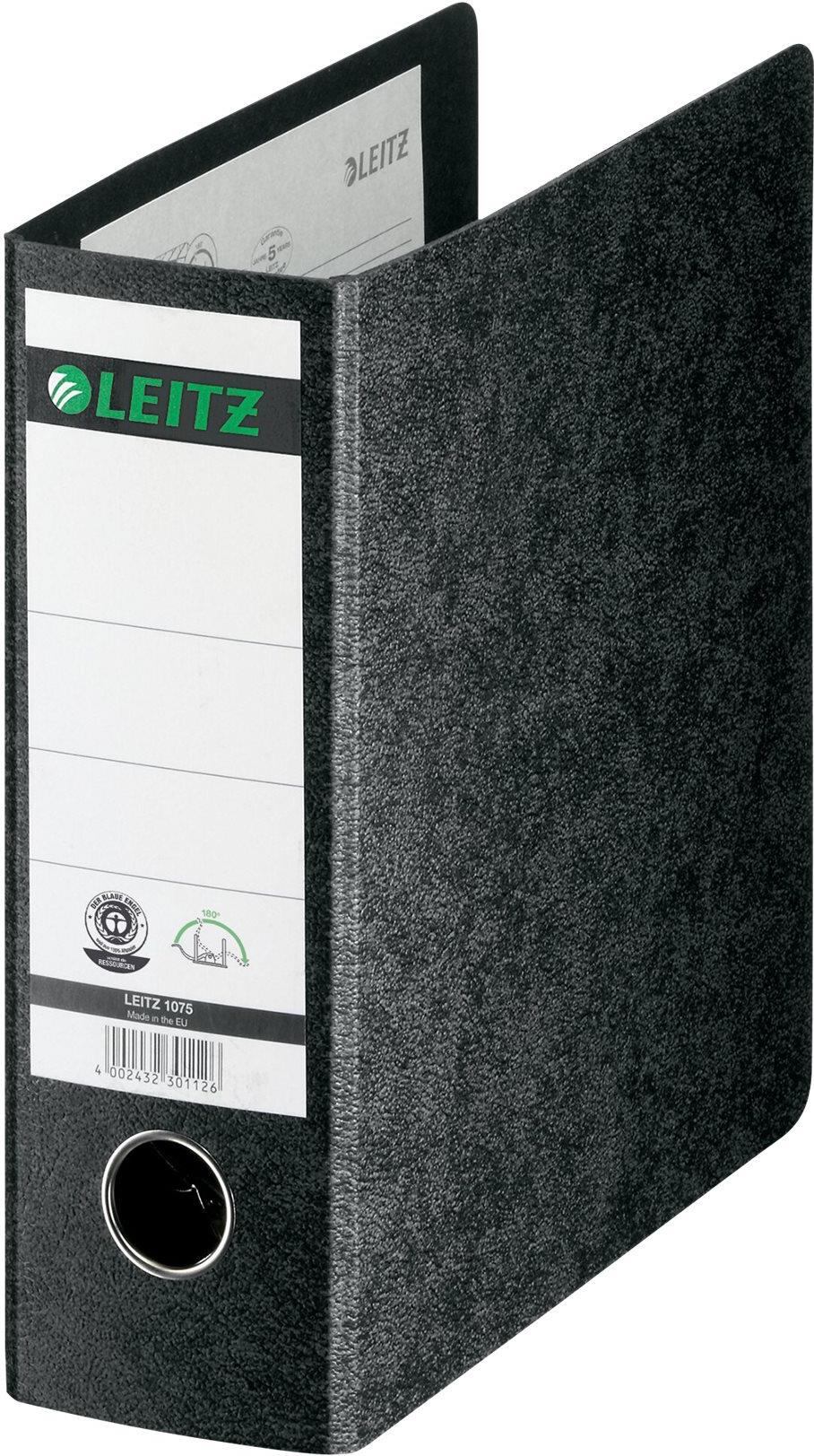 LEITZ Hartpappe-Ordner, 180 Grad, DIN A5, 77 mm, schwarz Einband aus Hartpappe, mit aufgeklebtem Rückenschild (1075-00-00)