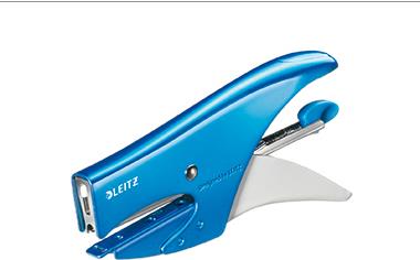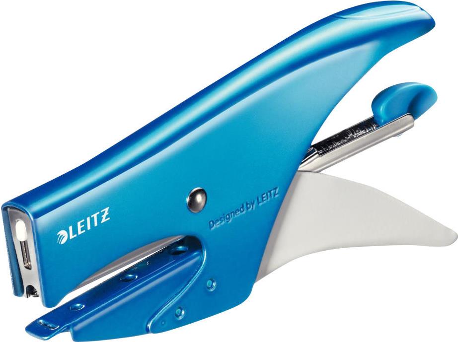 LEITZ Heftzange WOW, Heftleistung: 15 Blatt, metallic-blau Kleine Heftzange, Einlegetiefe: 49,5 mm für Heftklammern Nr. (5531-20-36)