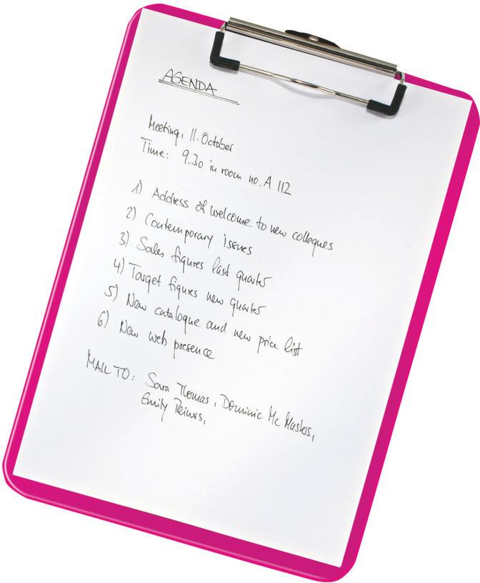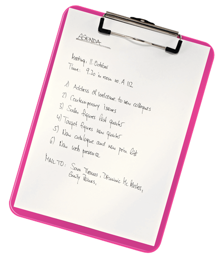 Hochwertiges Klemmbrett aus Polystyrol in brillanten WOW Farben. Ideal als Schreibunterlage unterwegs.