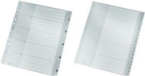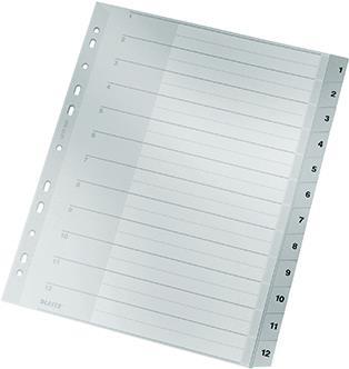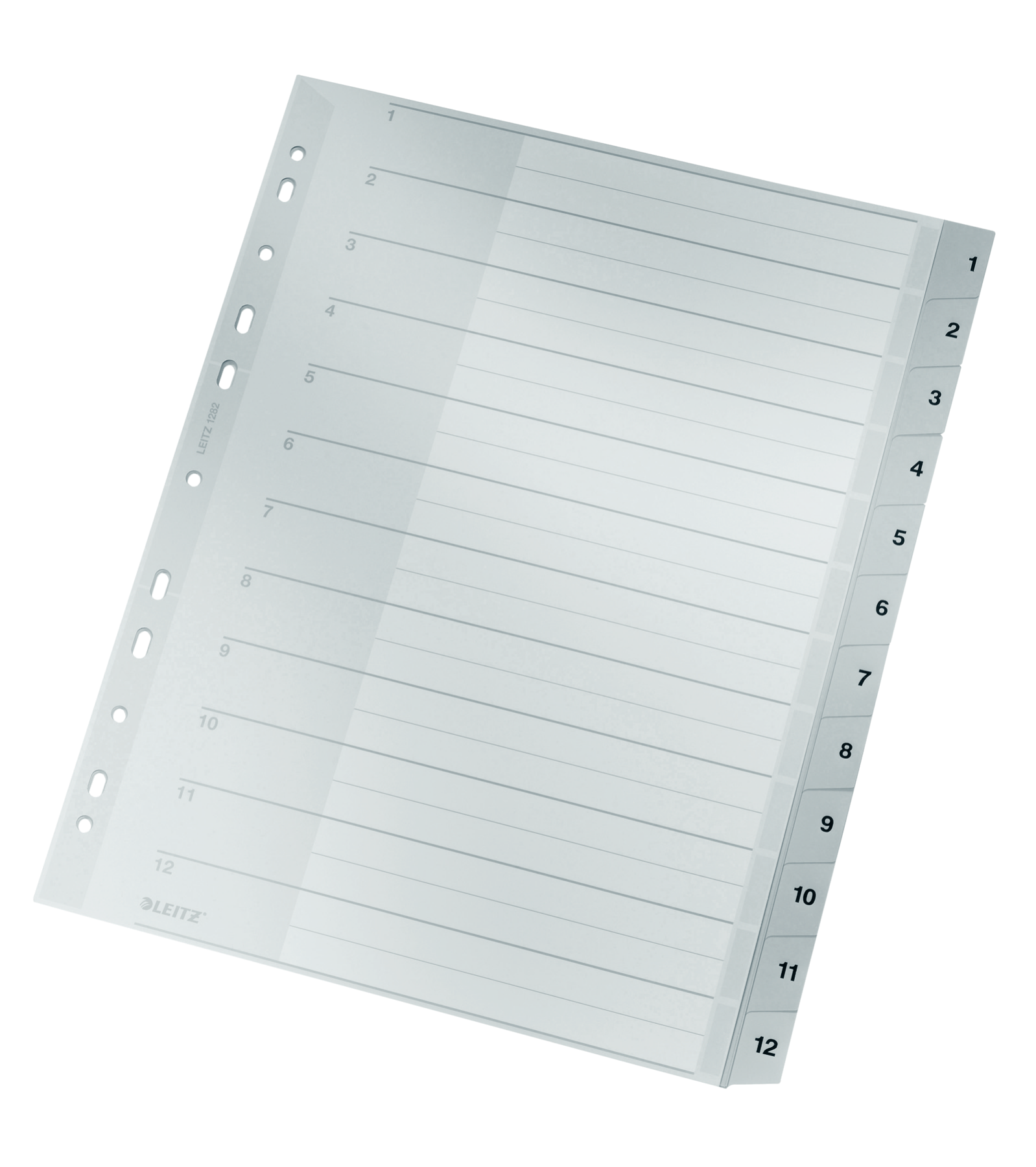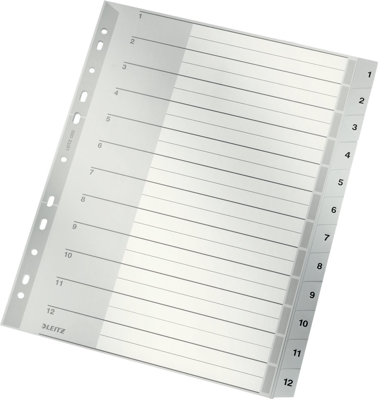 LEITZ Kunststoff-Register, Zahlen, A4 Überbreite, 1-12, grau 12-teilig, PP, 0,12 mm, mit beschriftbarem Deckblatt aus (1282-00-00)