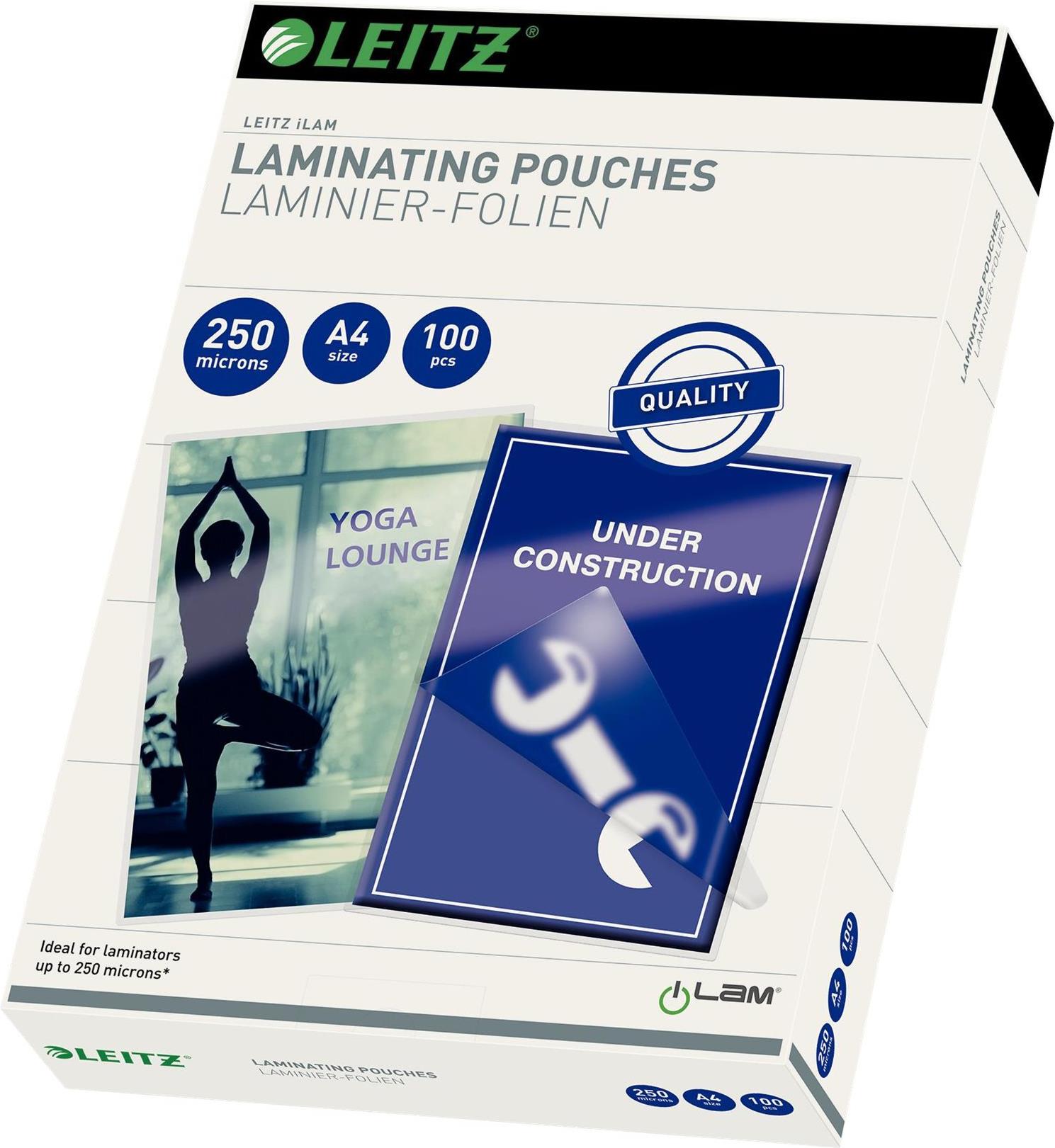 LEITZ Laminierfolientasche, DIN A4, glänzend, 500 mic 2 x 250 mic, aus Kunststoffmaterial Ethyl-Vinyl-Acetat (16935)