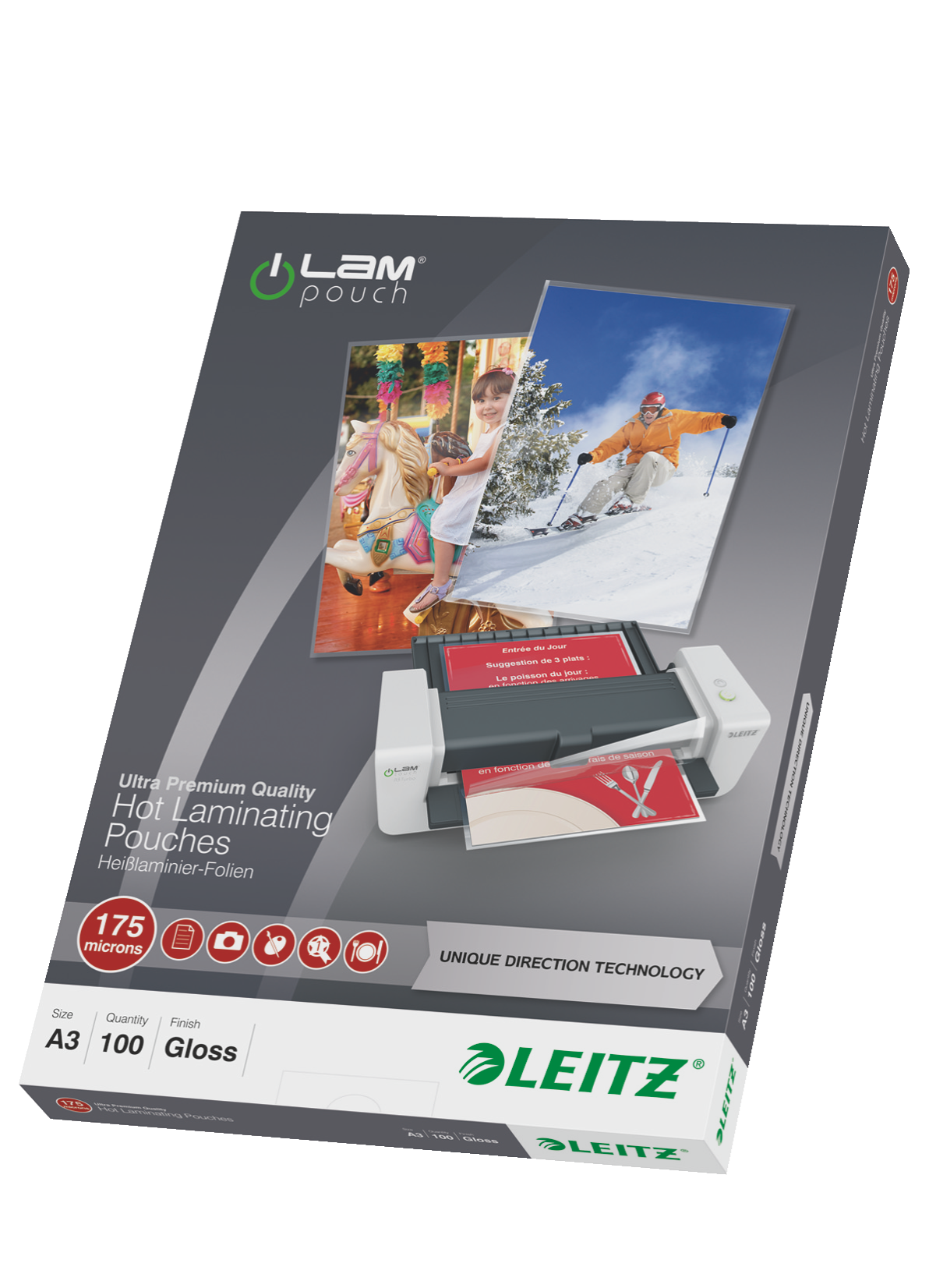 Einfaches, staufreies Laminieren mit UDT. Ultra-premium Qualitätsfolien bieten sicheren Schutz vor Schmutz, Flüssigkeiten und Feuchtigkeit. Sehr hohe Festigkeit.