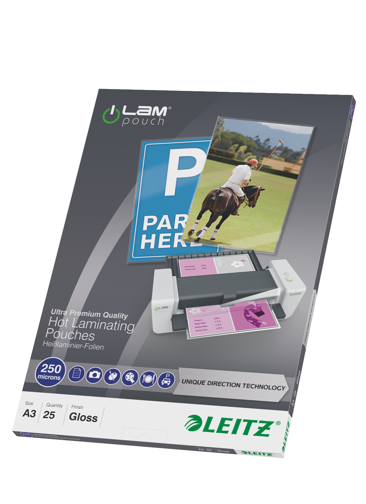 Einfaches, staufreies Laminieren mit UDT. Ultra-premium Qualitätsfolien bieten sicheren Schutz vor Schmutz, Flüssigkeiten und Feuchtigkeit. Extra hohe Festigkeit.