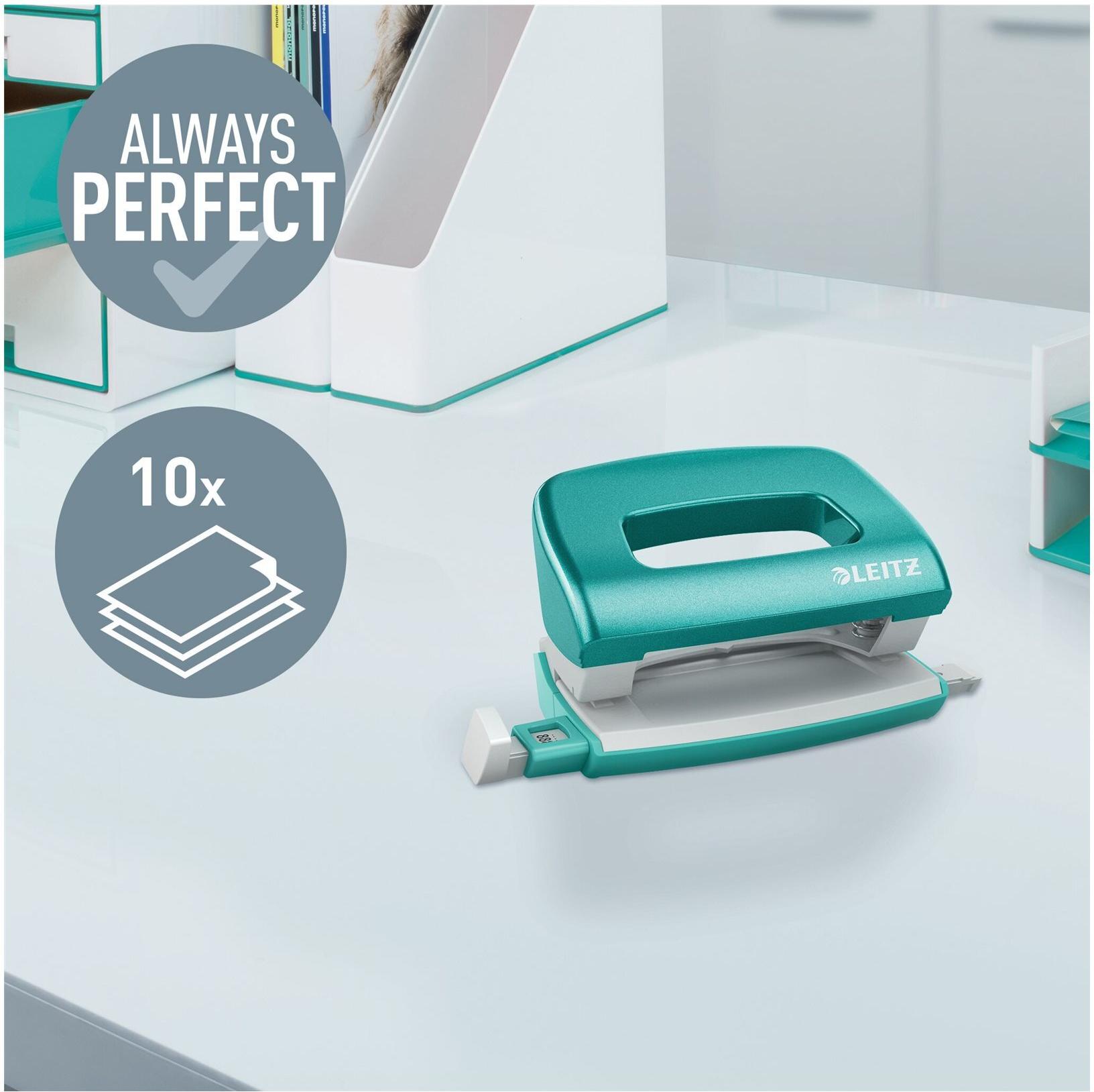 Robustes, handliches Modell in modernen WOW Farben für den Einsatz im Büro, zu Hause oder unterwegs. Locher mit patentierter, ergonomischer Griffmulde und ultra-scharfen Lochstempeln für weniger Kraftaufwand.