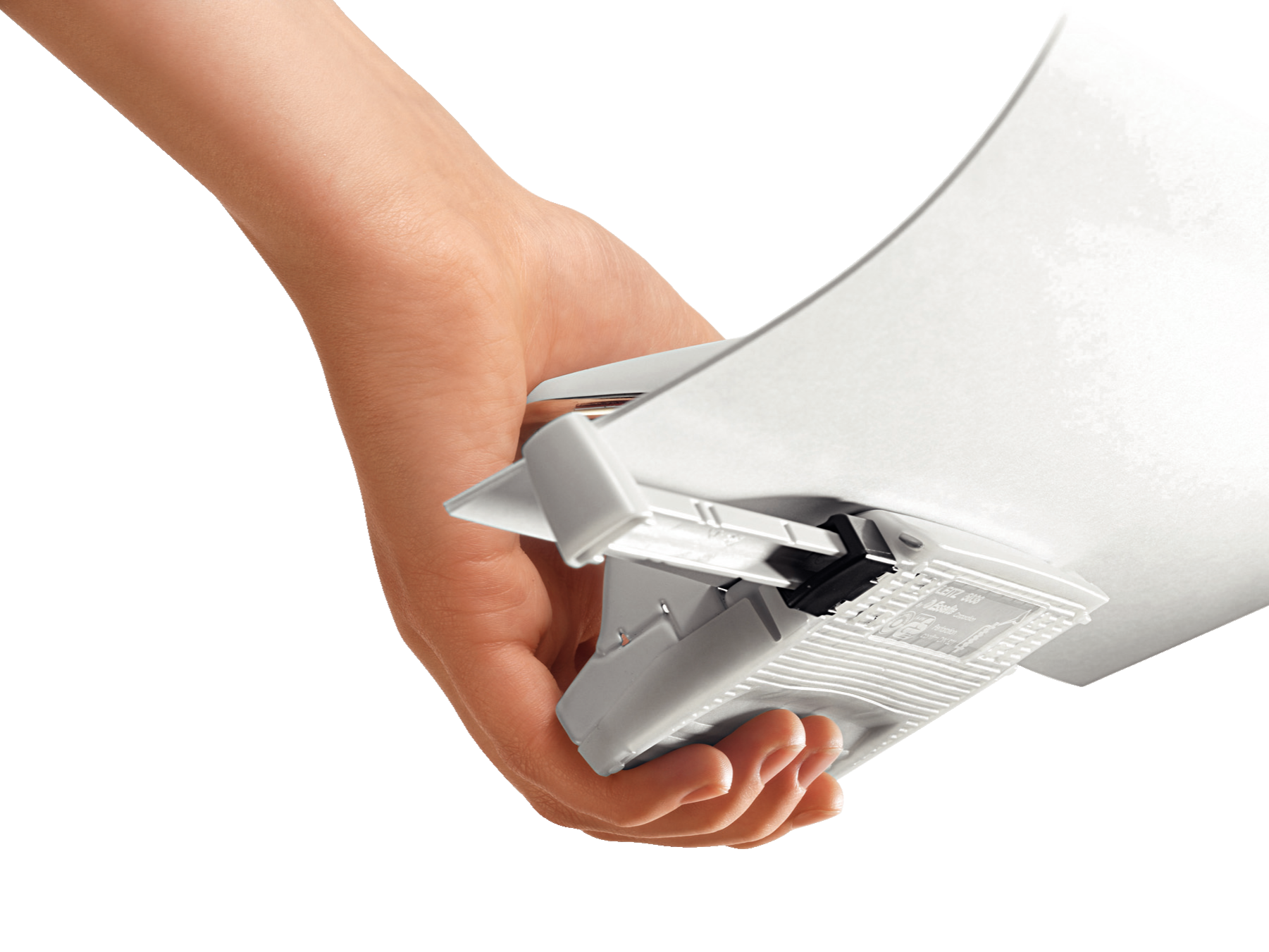 Kompaktes, professionelles Modell. Handlich und stark. Locher mit patentierter, ergonomischer Griffmulde und ultra-scharfen Lochstempeln für weniger Kraftaufwand.