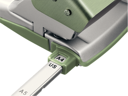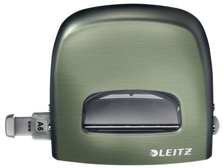 Auffallender Metalllocher für den täglichen Gebrauch. Modernes, gebürstetes Oberflächendesign und stylische Farben. Locher mit patentierter, ergonomischer Griffmulde und ultra-scharfen Lochstempeln für weniger Kraftaufwand.