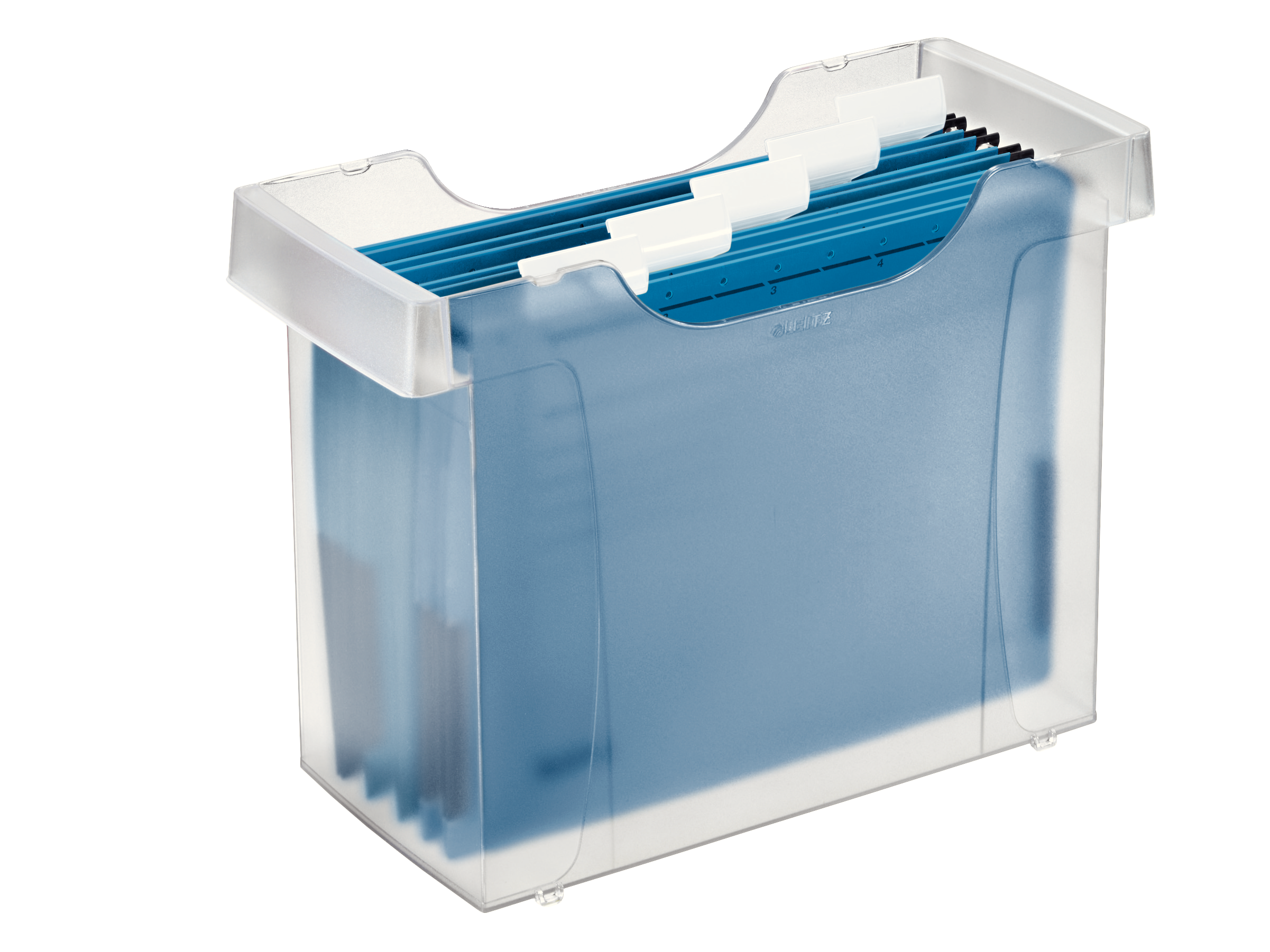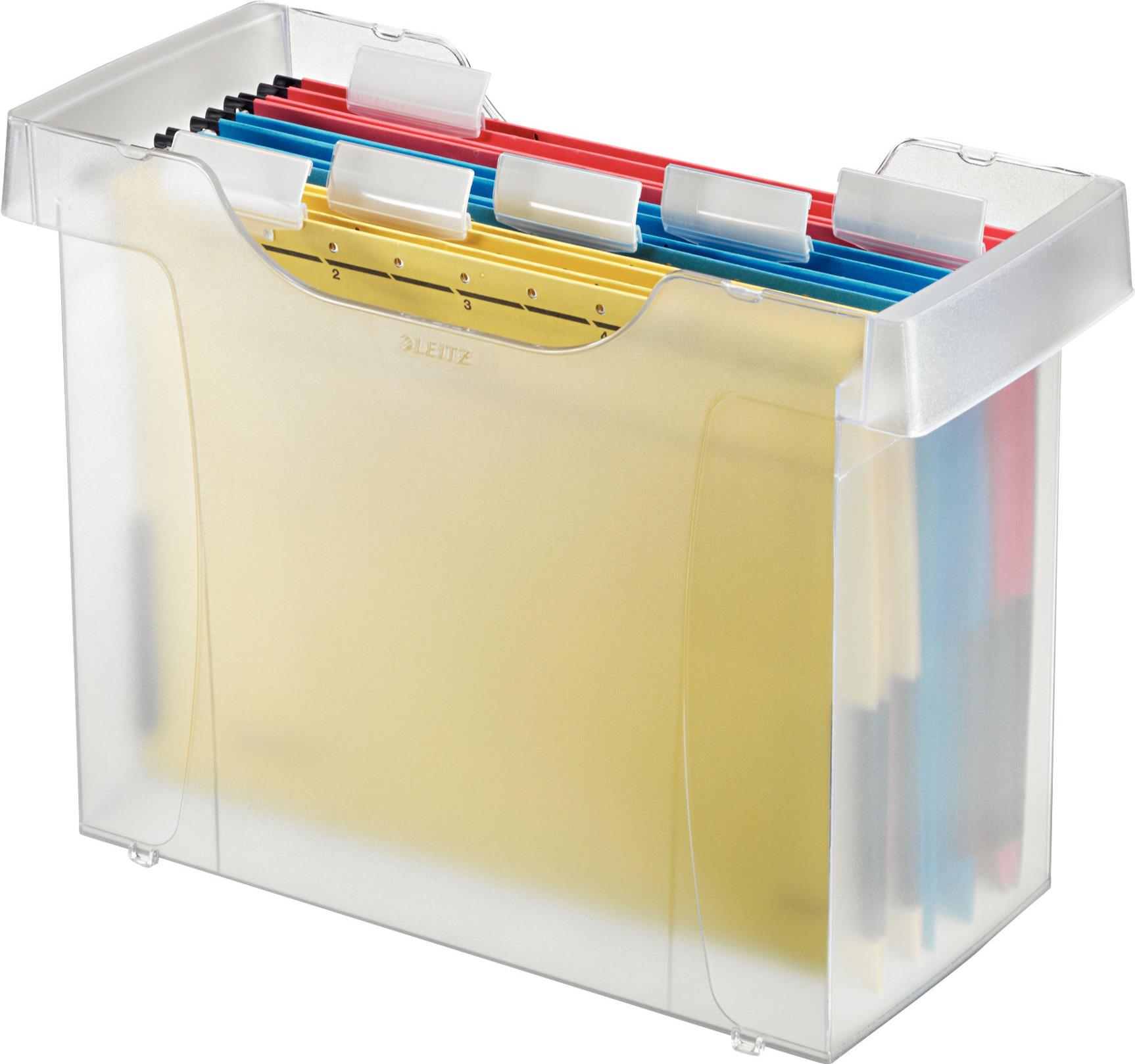 LEITZ Mini-Aktei Hängenmappen-Box Plus, frost aus Polystyrol, stapelbar, niedrige Vorderseite, mit Trage- (1993-00-03)