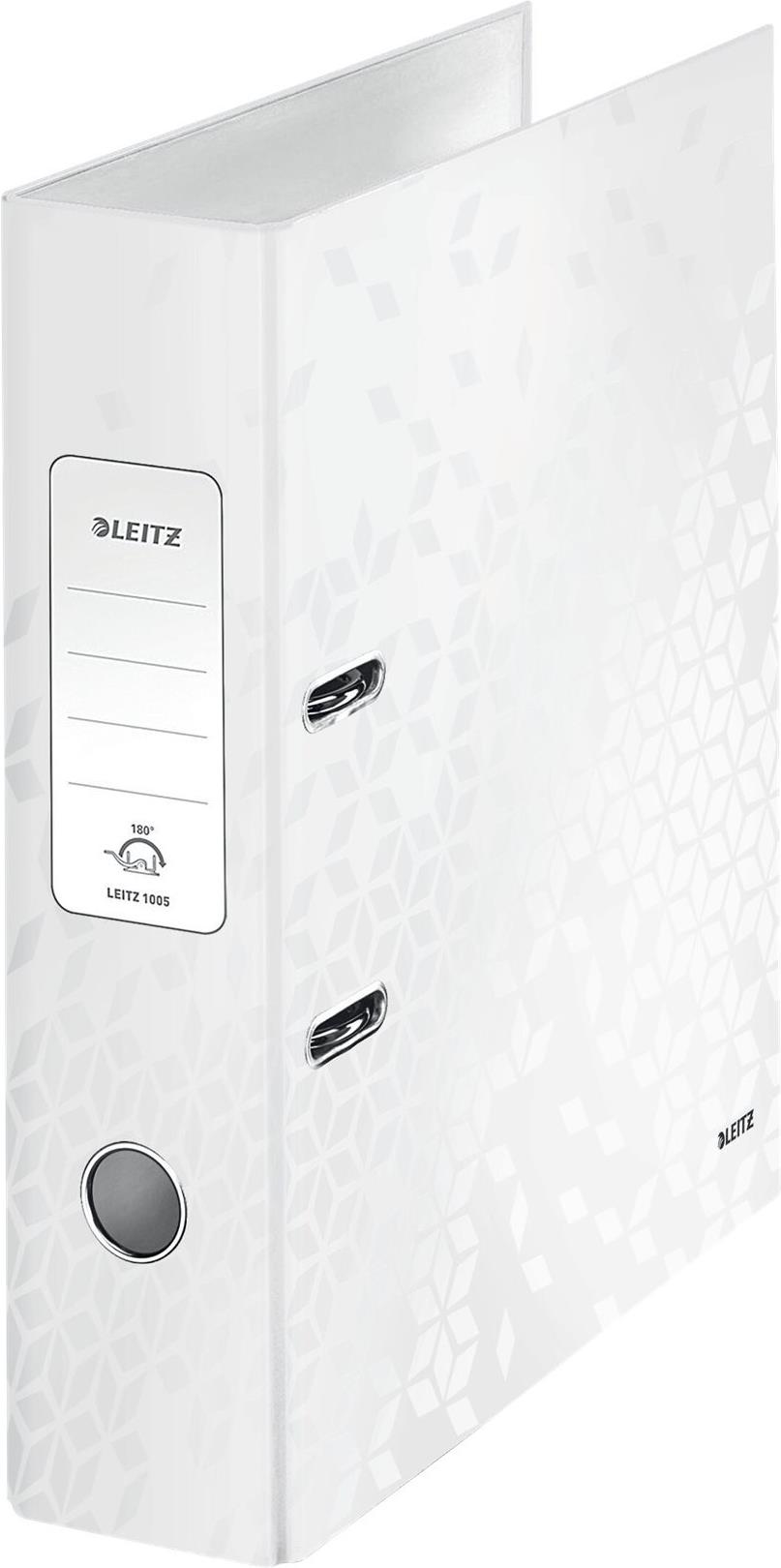 LEITZ Ordner WOW, 180 Grad, DIN A4, 80 mm, perlweiß Einband aus Graupappe, innen und außen mit laminiertem (1005-00-01)