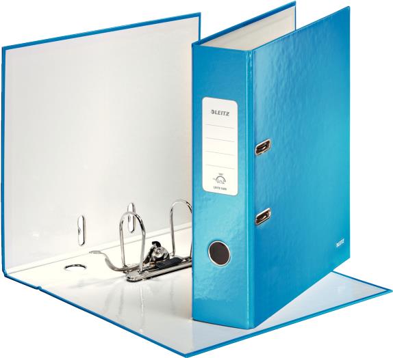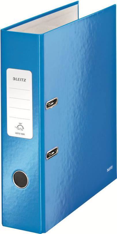 LEITZ Ordner WOW, 180 Grad, DIN A4, 80 mm, blau Einband aus Graupappe, innen und außen mit laminiertem (1005-00-36)