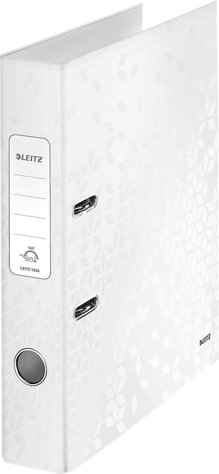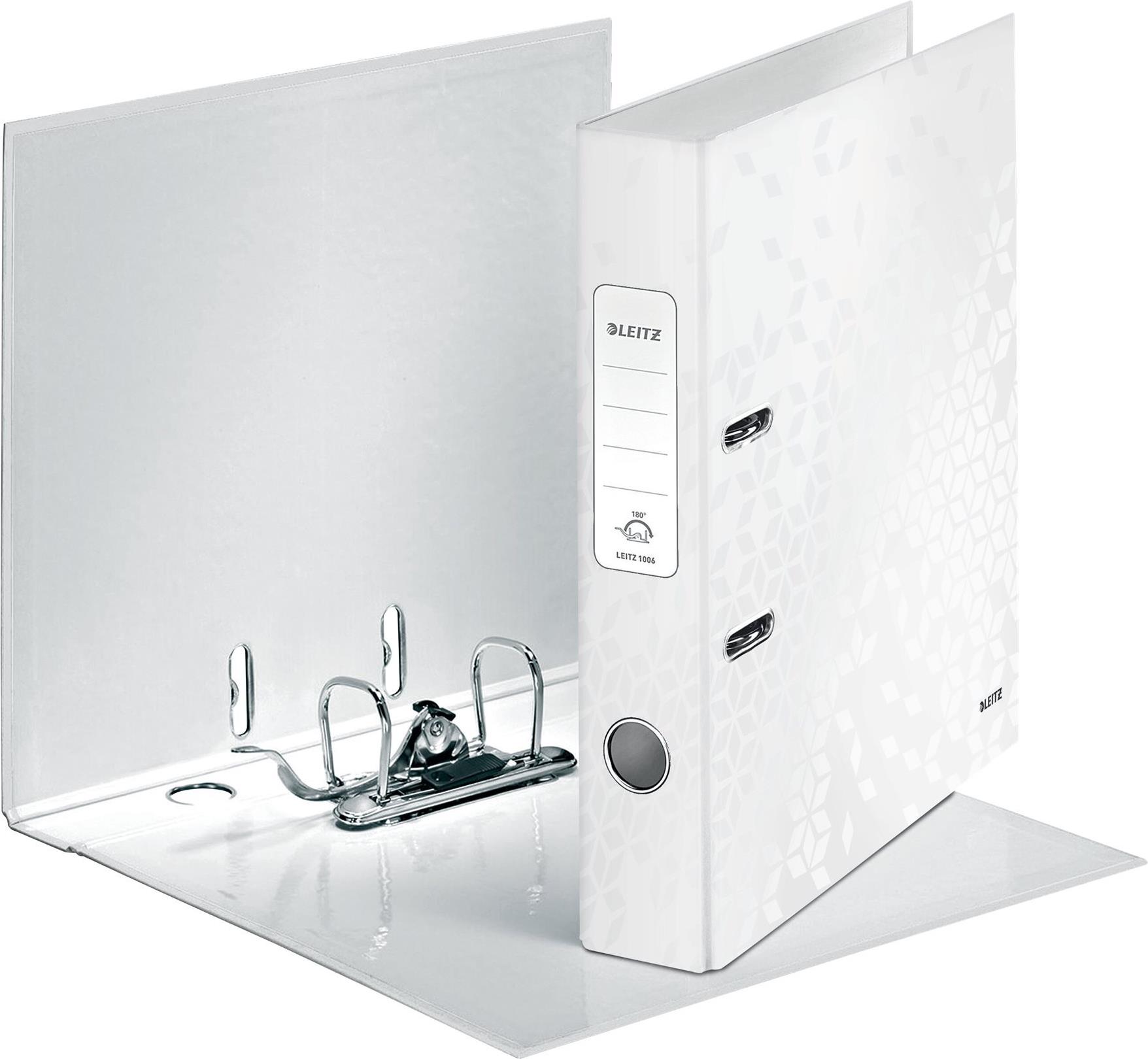 LEITZ Ordner WOW, 180 Grad, DIN A4, 50 mm, perlweiß Einband aus Graupappe, innen und außen mit laminiertem (1006-00-01)