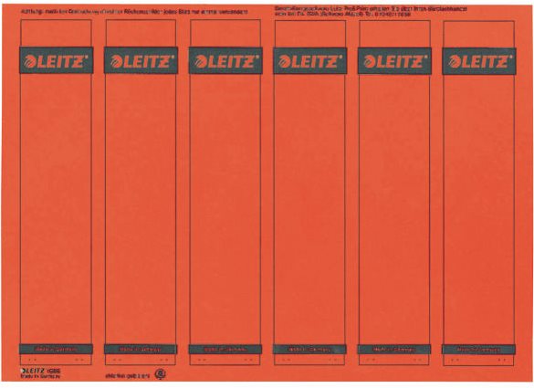 LEITZ Ordnerrücken-Etikett, 39 x 192 mm, kurz, schmal, rot passend für LEITZ Standard- und Hartpappe-Ordner 1050 und (1686-20-25)