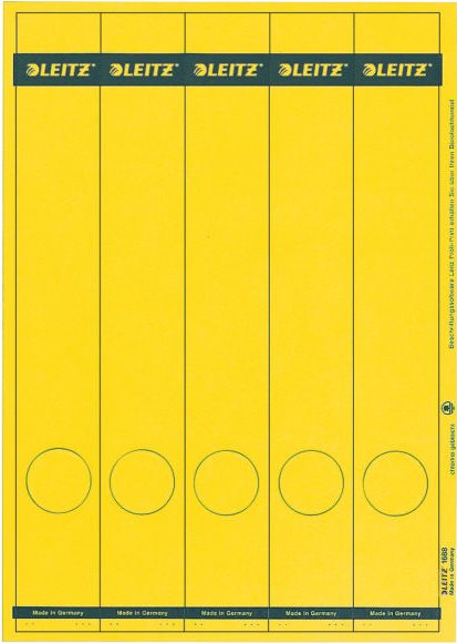 LEITZ Ordnerrücken-Etikett, 39 x 285 mm, lang, schmal, gelb passend für LEITZ Standard- und Hartpappe-Ordner 1050 und (1688-00-15)