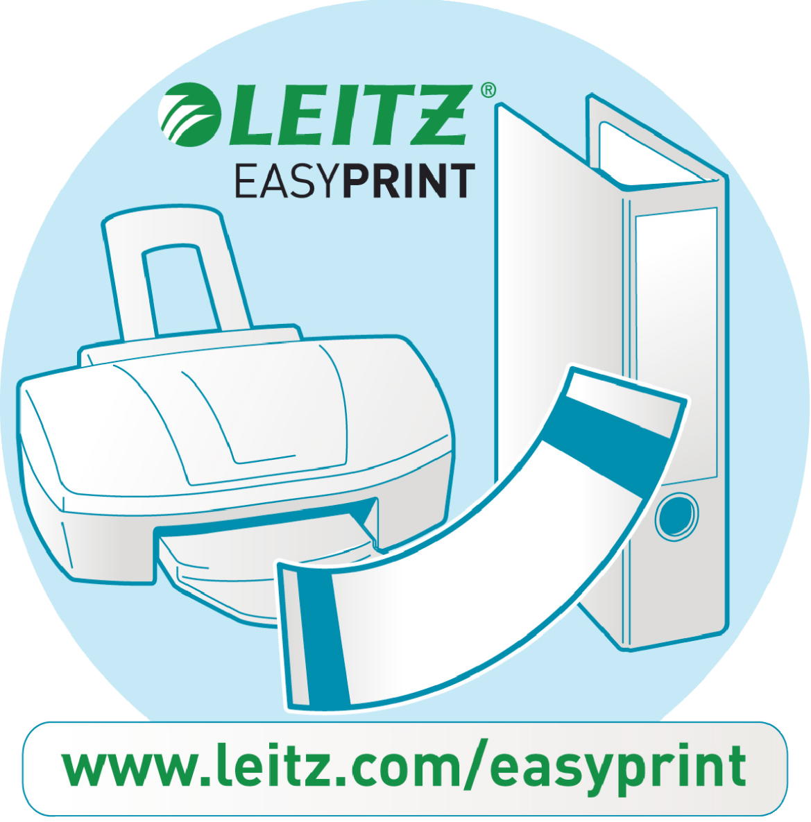 Die PC-beschriftbaren Rückenschilder sorgen für eine übersichtliche Organisation im Regal oder im Archiv. Mit dem nutzerfreundlichen und webbasierten Programm "Easyprint" lassen sich die Rückenschilder nach individuellen Bedürfnissen schnell und einfach gestalten und ausdrucken.