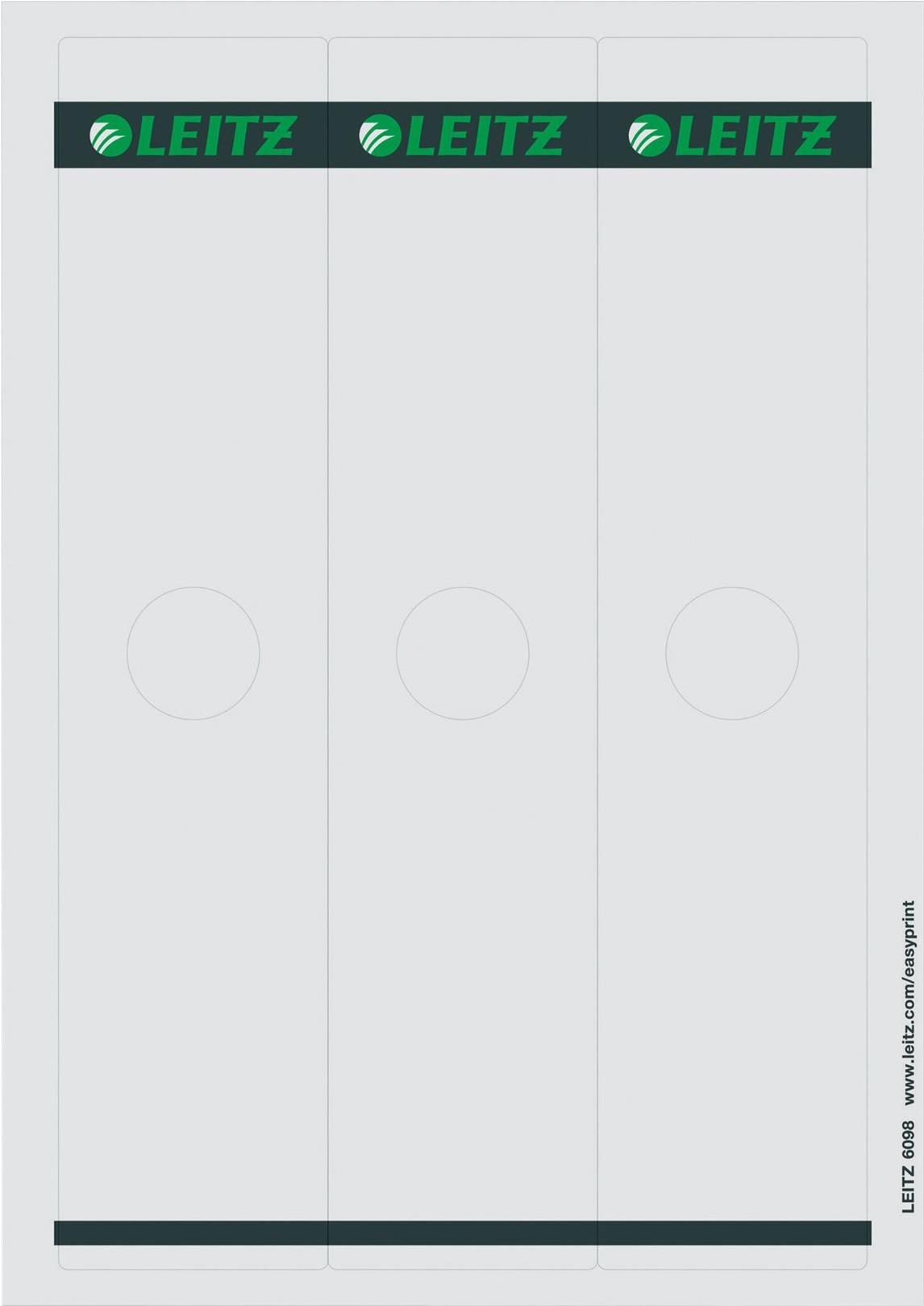 LEITZ Ordnerrücken-Etikett für Hängeordner, 61 x 279 mm lang, breit, grau, passend für LEITZ Hängeordner 1821, 1824 (6098-00-85)