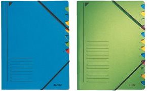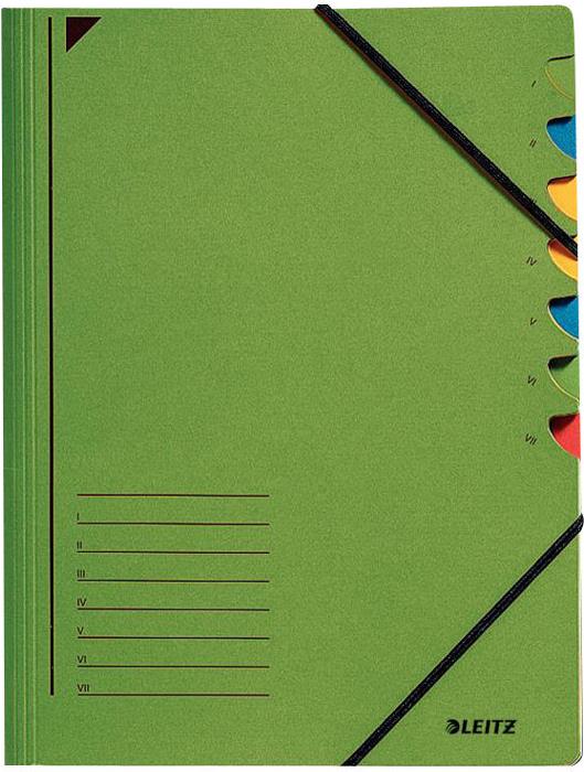 • LEITZ Ordnungsmappe, DIN A4, Karton, 7 Fächer, grün Colorspankarton 450 g-qm, Fächerblock 320 g-qm, mit (3907-00-55)