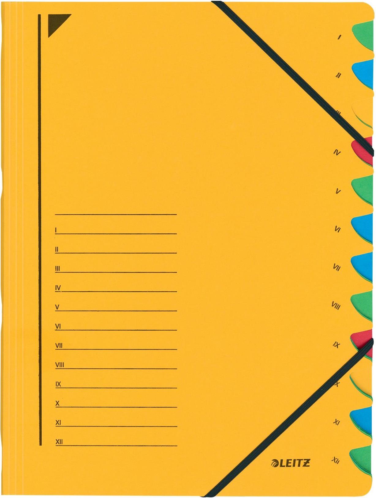LEITZ Ordnungsmappe, DIN A4, Karton, 12 Fächer, gelb Colorspankarton 450 g-qm, Fächerblock 320 g-qm, mit (3912-00-15)