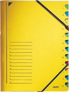 • LEITZ Ordnungsmappe, DIN A4, Karton, 12 Fächer, gelb Colorspankarton 450 g-qm, Fächerblock 320 g-qm, mit (3912-00-15)