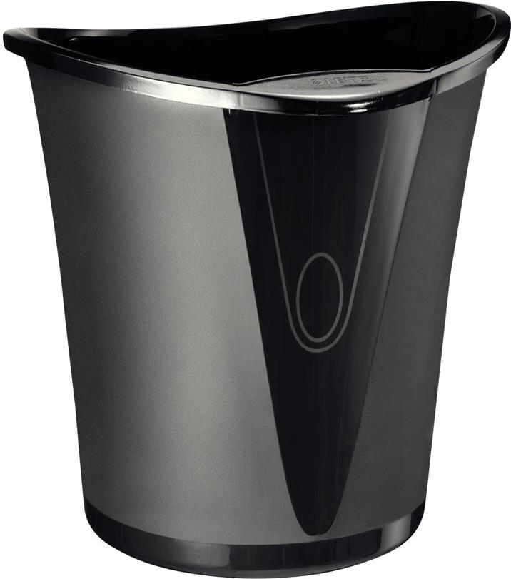 LEITZ Papierkorb Allura, aus Kunststoff, 18 Liter, schwarz rund mit Griffrand (5204-00-95)