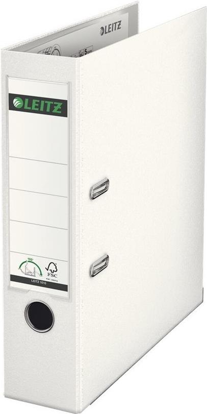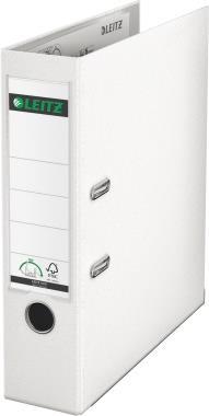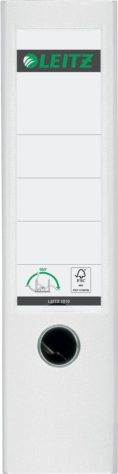 LEITZ Plastikordner, 180 Grad, DIN A4, 80 mm, weiß farbiger Einband aus Pappe, mit PP-Folie kaschiert (1010-50-01)