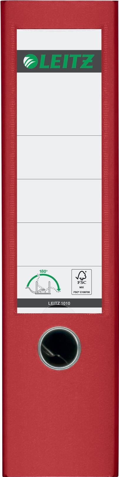 LEITZ Plastikordner, 180 Grad, DIN A4, 80 mm, rot farbiger Einband aus Pappe, mit PP-Folie kaschiert (1010-50-25)