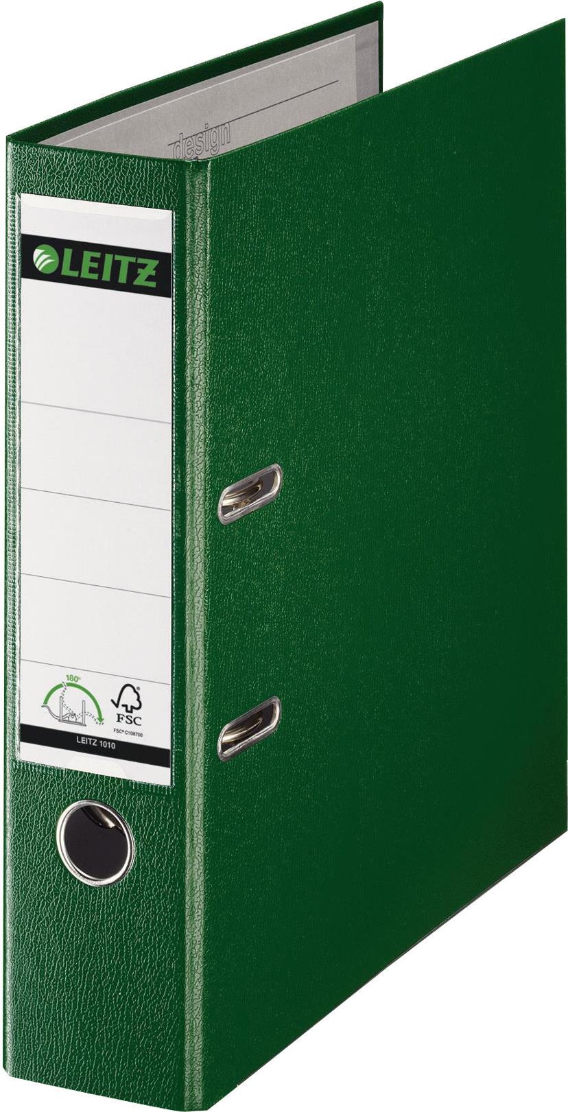 LEITZ Plastikordner, 180 Grad, DIN A4, 80 mm, grün farbiger Einband aus Pappe, mit PP-Folie kaschiert (1010-50-55)